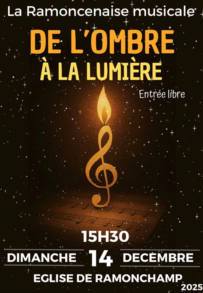 « La Ramoncenaise Musicale » vous invite à son concert de Noël : un moment magique en musique sur le thème de l’ombre à la lumière.
