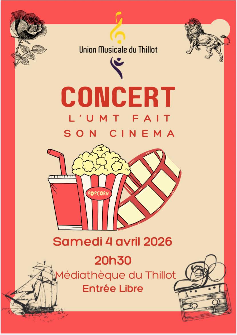 Concert organisé par l’Union Musicale du Thillot qui a pour thème : L’UMT fait son cinéma. Entrée libre.