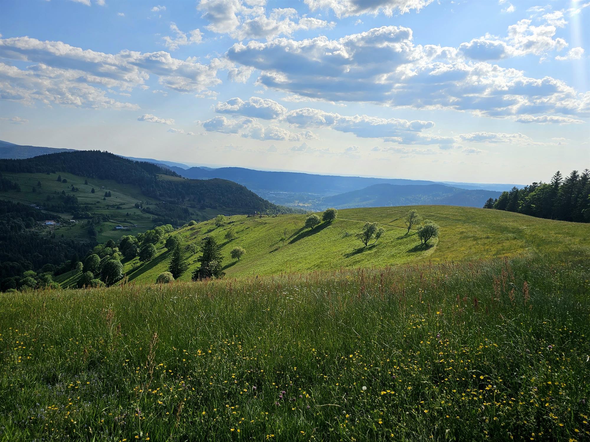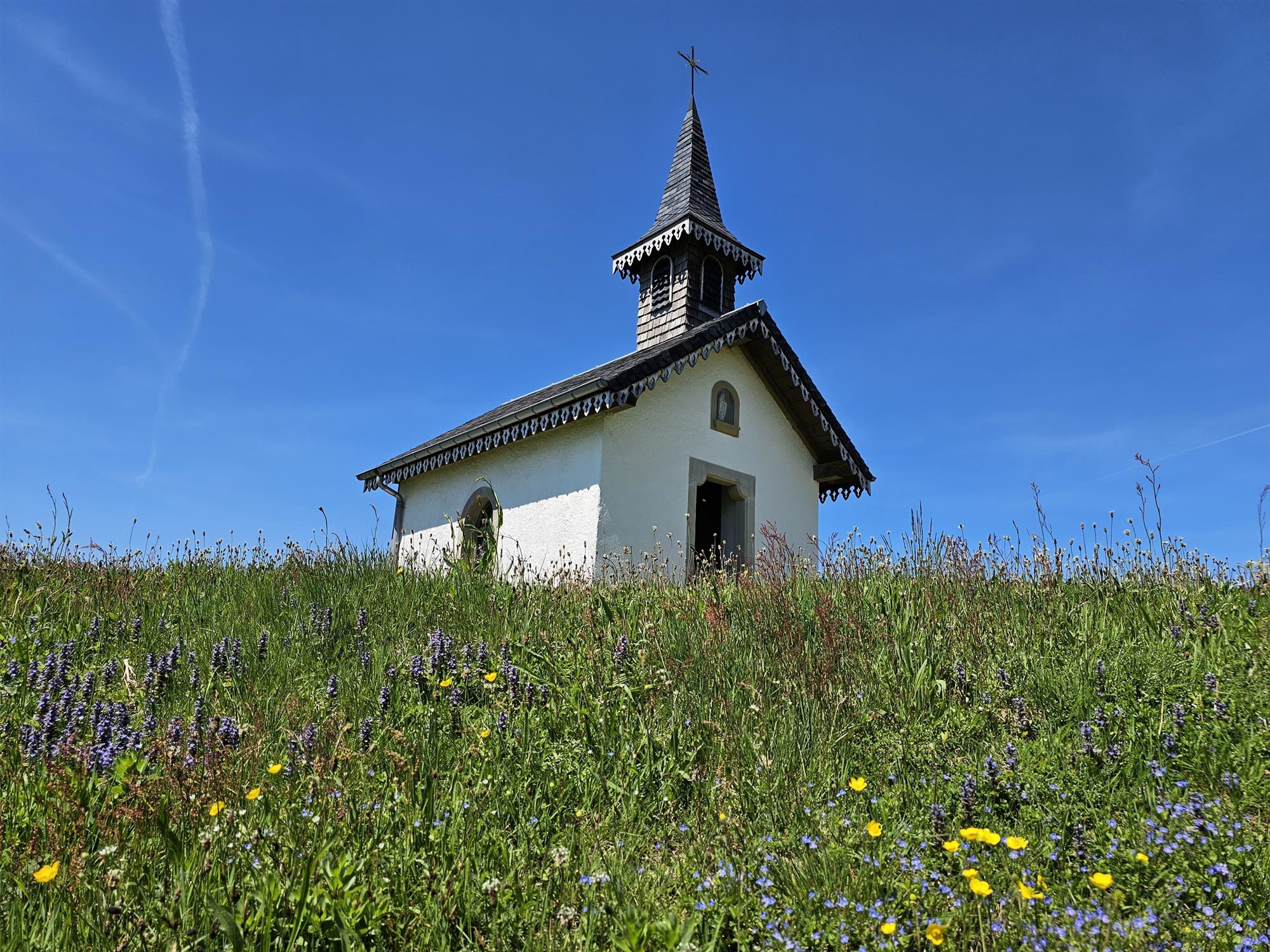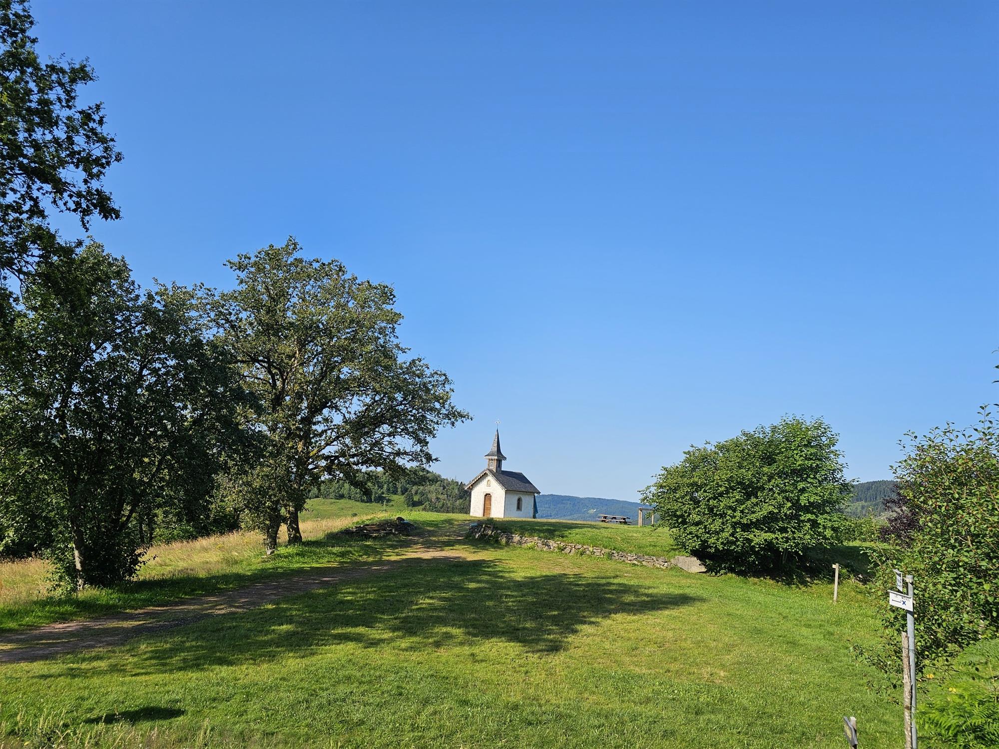 La première partie du parcours en  monte régulièrement en passant par la chapelle de Pitié et la chapelle de la Salette avec quelques passages plus raides pour atteindre la Tête des Champs. L’ascension est agréable et alterne entre chemins, petites routes et prairies.