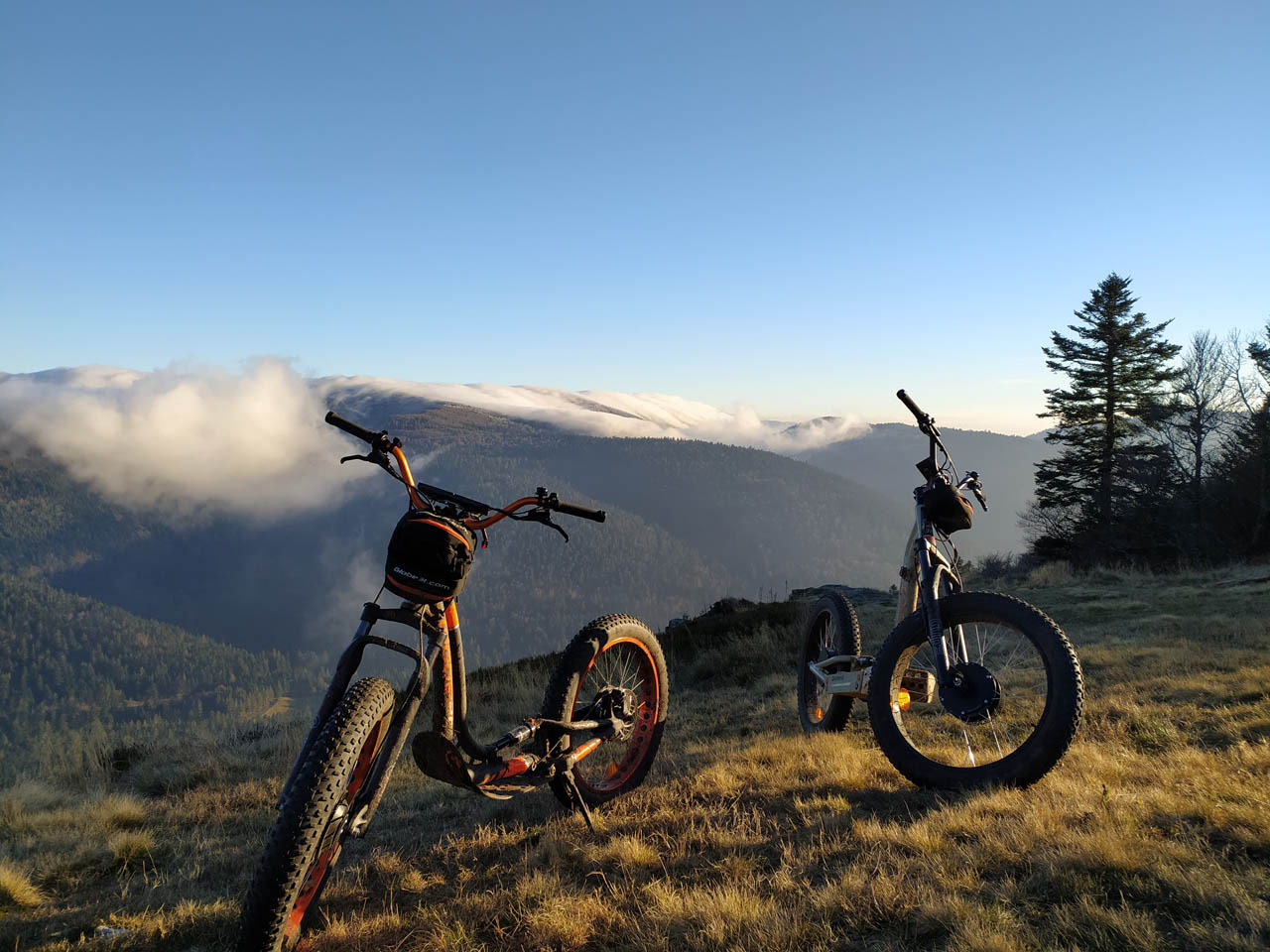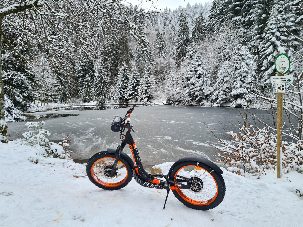 Balade nature en trottinette électrique tout-terrain et en VTT électrique, en autonomie avec GPS, vers le sommet du Hohneck, les lacs et les panoramas de La Bresse.