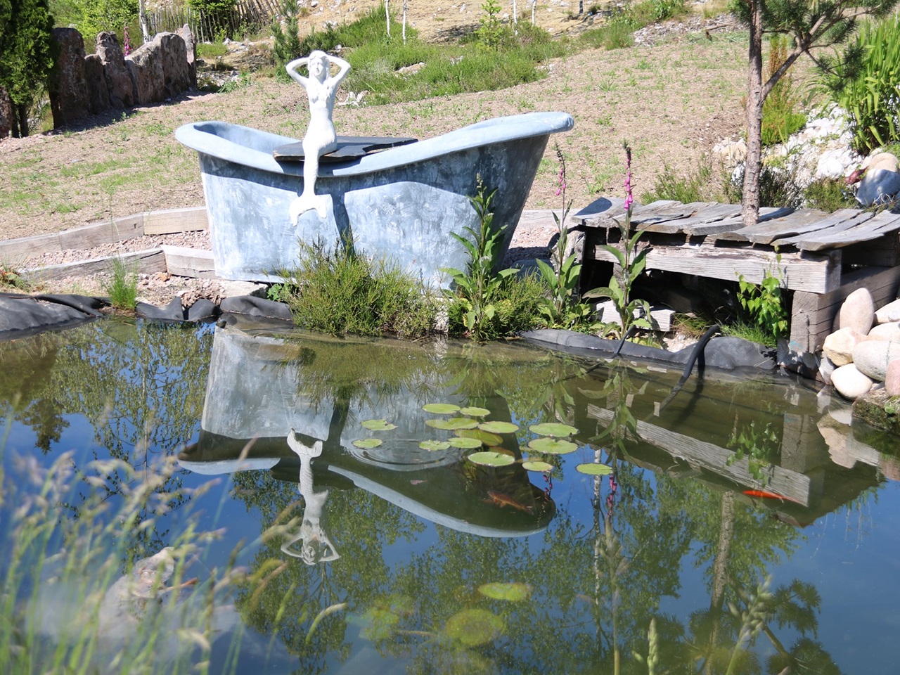 Un jardin magique pour le plaisir des sens où se cotoient en une parfaite harmonie de nombreuses variétés de rosiers, hortensias, vivaces, plantes aquatiques, arbustes, légumes, plantes aromatiques…