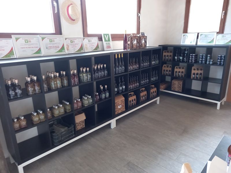 Après les explications techniques entre ces grands arbustes, la visite se poursuit au magasin de vente directe avec la dégustation de plusieurs produits à base de son fruit fétiche (bière, liqueur, apéritif, confiture, nectar…).
